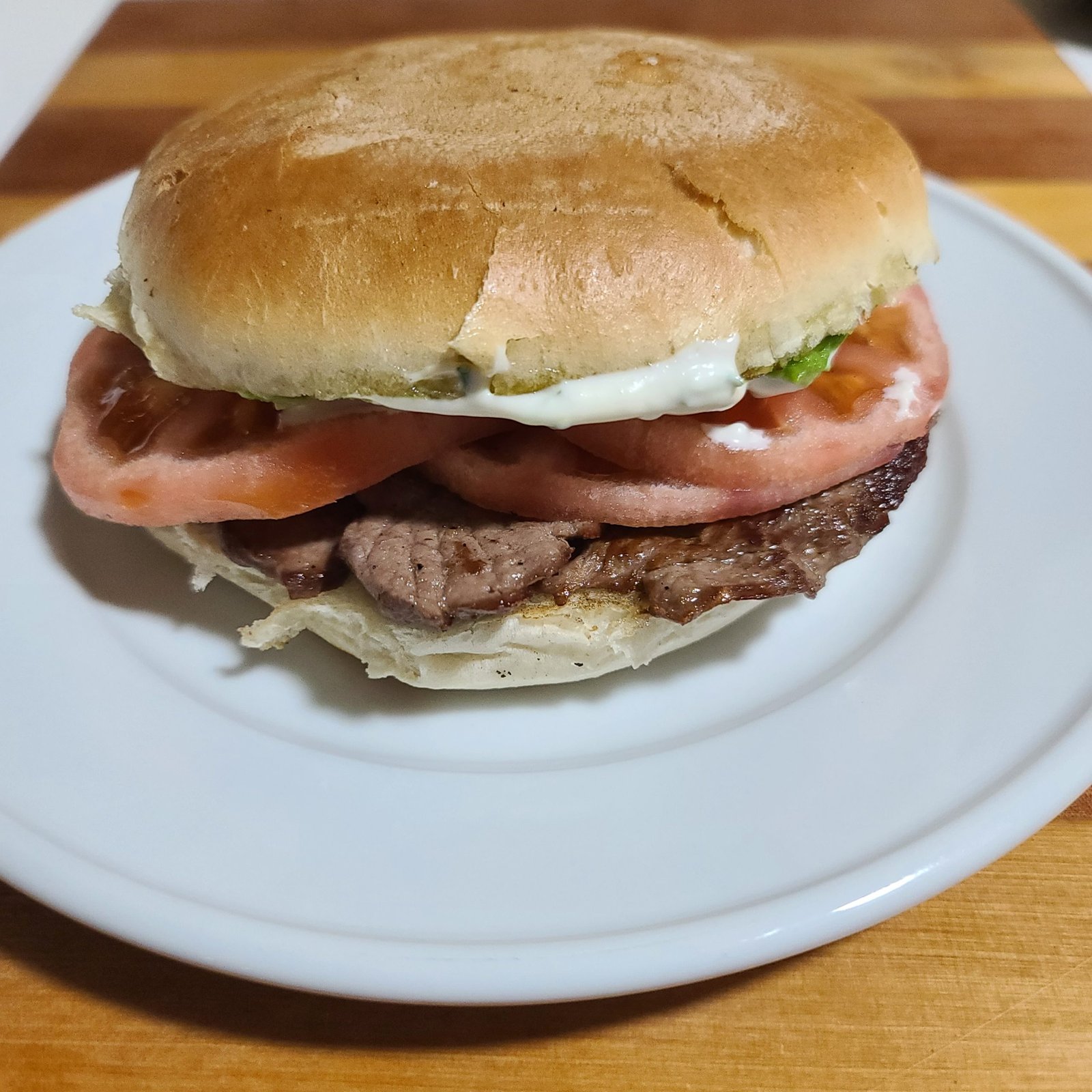 Sándwich tradicional chileno; pan frica, 160 grs churrasco 100% lomo de vacuno, tomate y palta 100% fresca. Consulte por mayonesa casera con huevo pasteurizado.