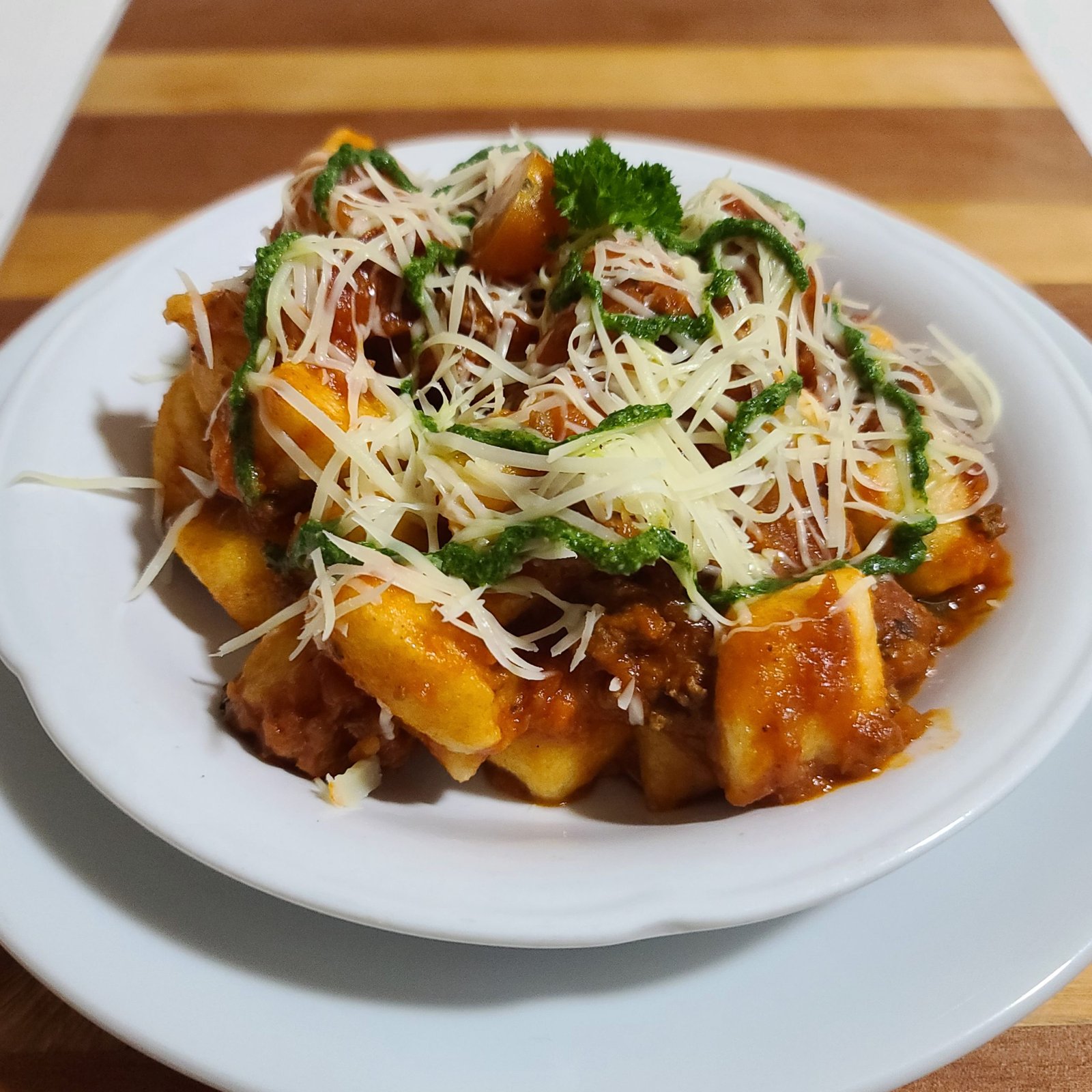 ñoquis con boloñesa vegetariana.