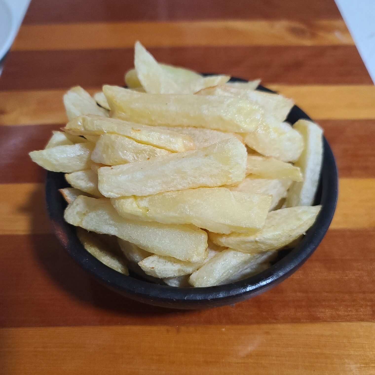 Papas fritas Caseras, cortadas a mano y fritas en el momento, porción para picar entre 2 – 3 personas.